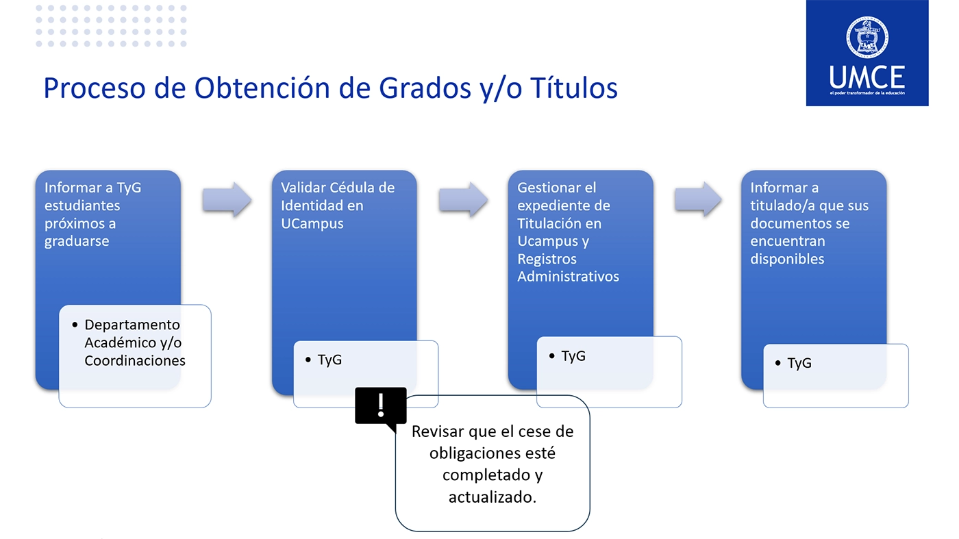 - Revisar y validar que se cumplan todos los requisitos y normativas de la UMCE para otorgar título y/o grado académico.